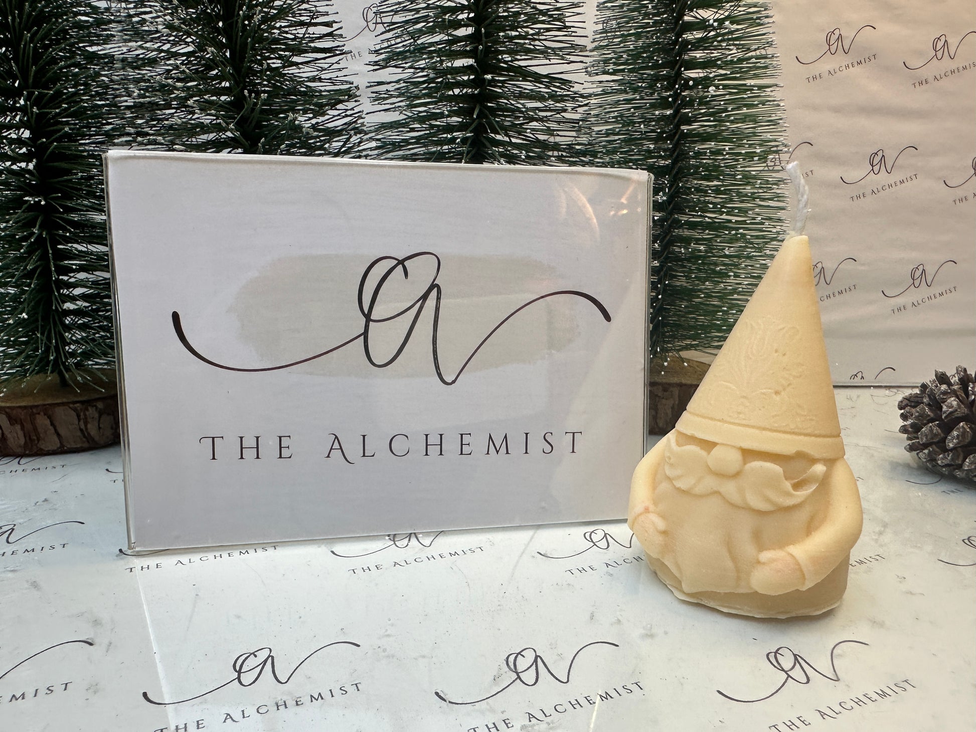 "Evergreen Gnome " This candle represents the magic of nature, wisdom, and protection. Gnomes are traditionally seen as guardians of the earth, symbolizing harmony with nature and a grounding presence. Paired with the festive atmosphere, it embodies warmth, joy, and timeless tradition, making it a charming addition to any seasonal celebration.