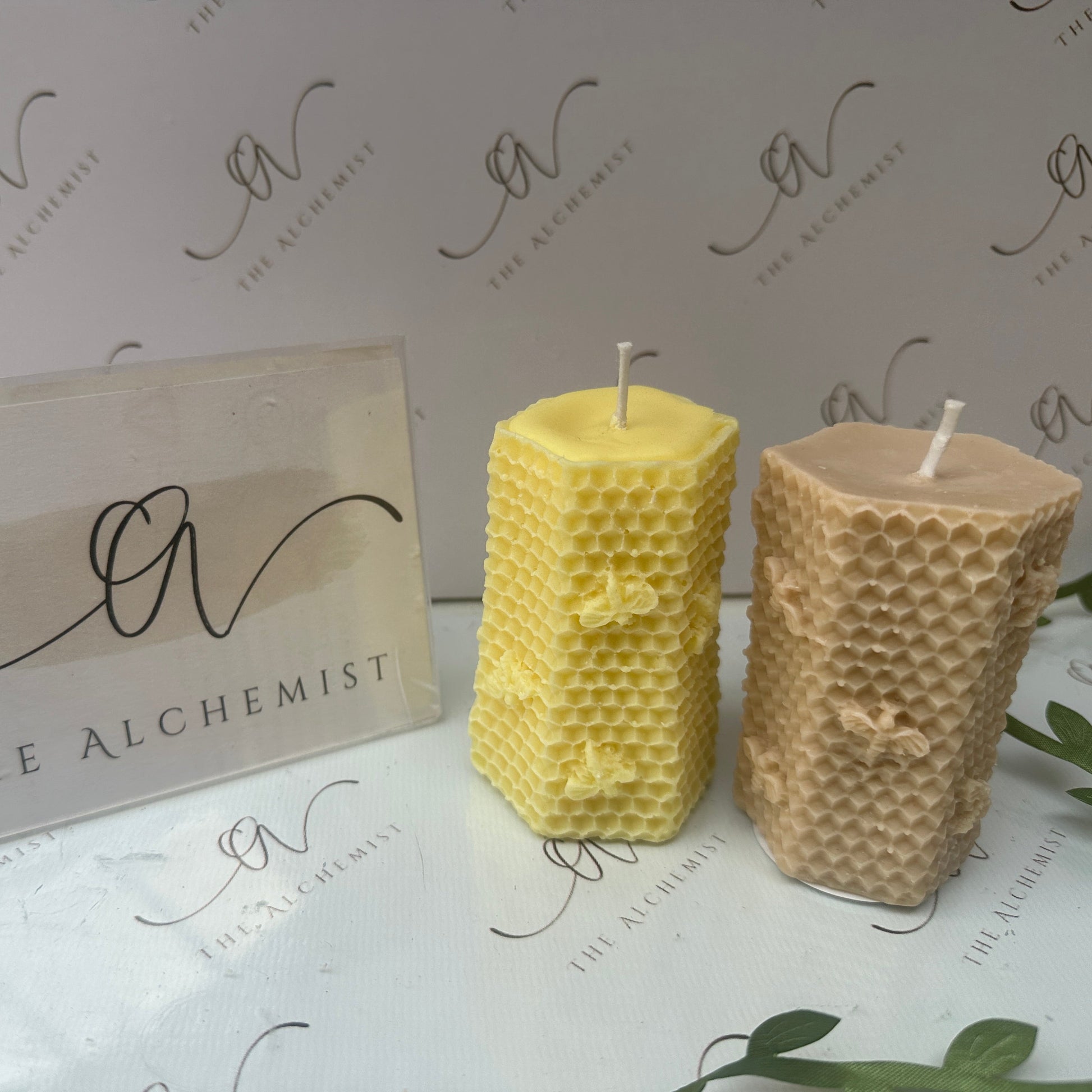 Hive Harmony Candle Symbolizing structured creativity and natural order, these pillars channel the collective wisdom and community energy of the beehive.