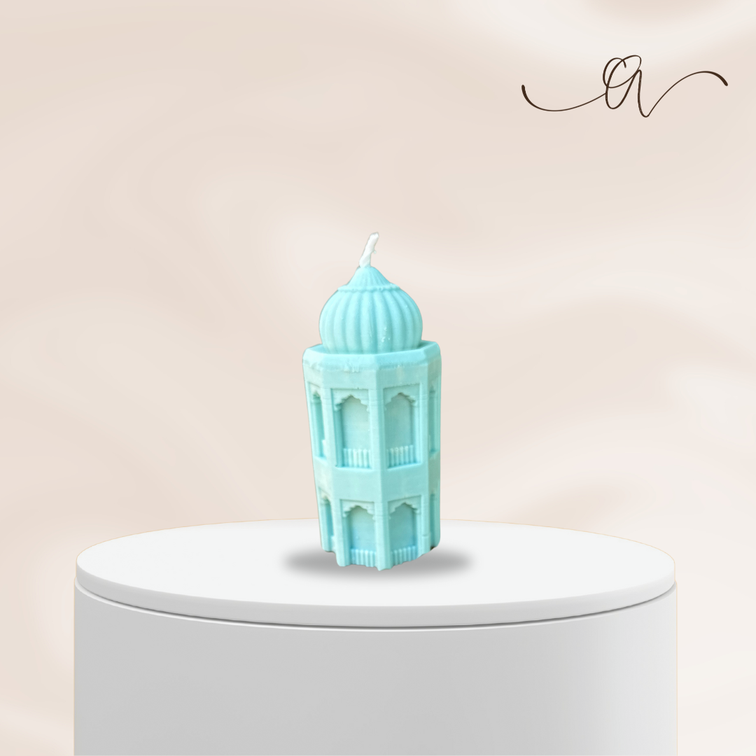 "The Minaret Glow" (Tall Dome-Shaped Candle) Inspired by the beauty of minarets, symbolizes spiritual elevation and enlightenment. It radiates a warm light, guiding the spirit towards wisdom and serenity, making it a perfect piece for fostering a calm and focused atmosphere.