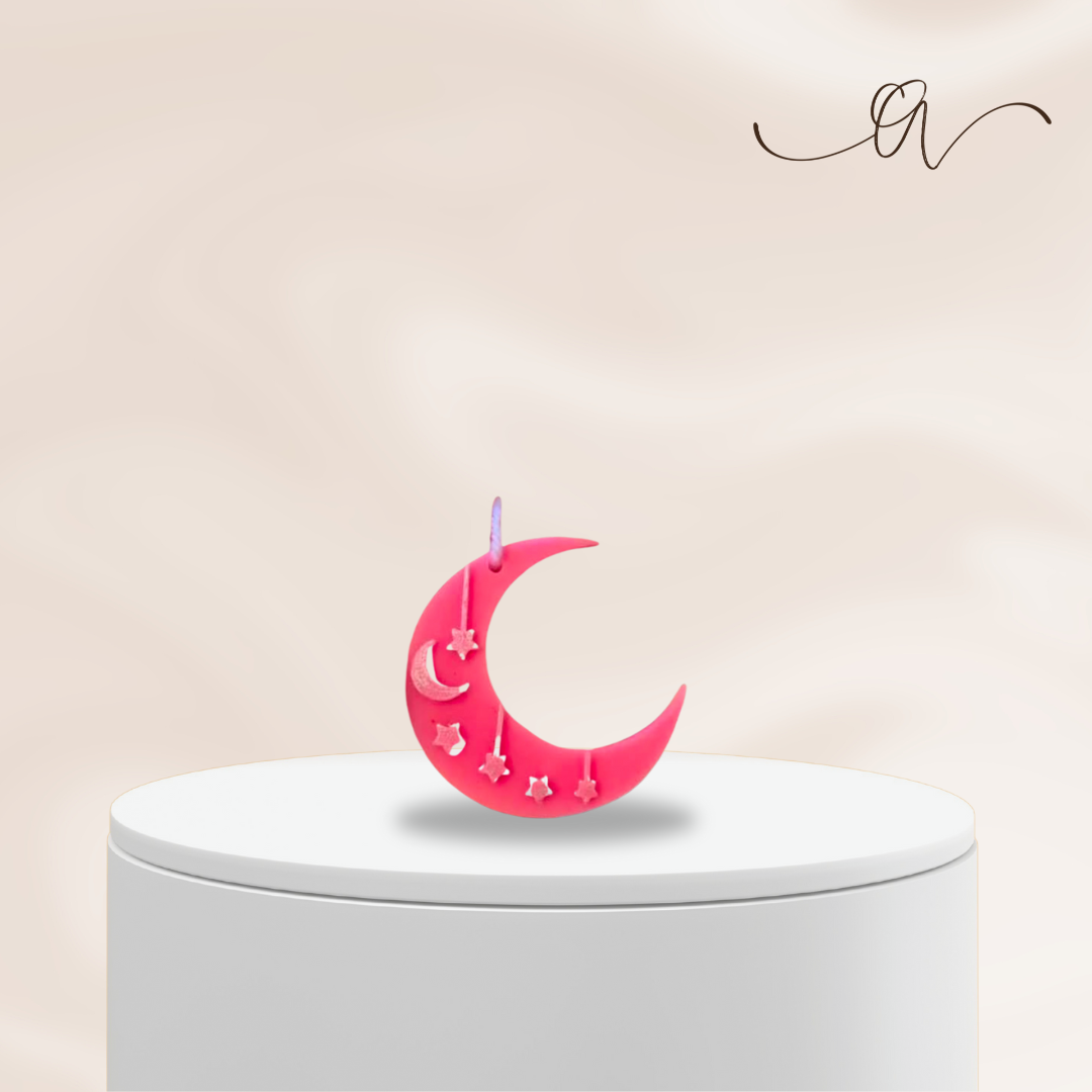 Crescent moon with stars ornament. Symbolizes guidance, hope, and celestial protection. It inspires dreams and creativity.