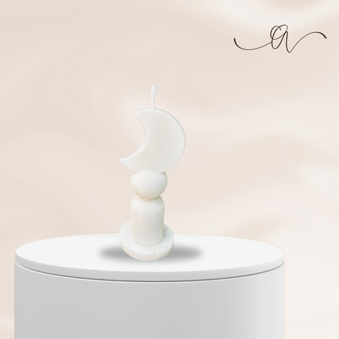 "The Moonlit Sanctuary" (Small Crescent Moon Candle) Embracing the quiet power of the moon, Moonlit Sanctuary is a symbol of protection, comfort, and reflection. This small yet meaningful candle creates a safe space for introspection and spiritual growth.
