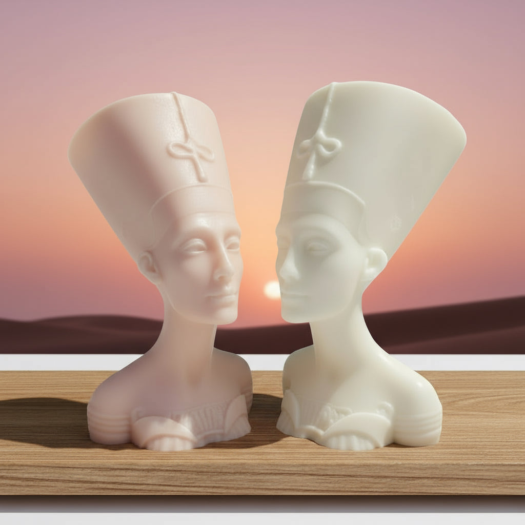 These candles shaped like the bust of Queen Nefertiti embody powerful divine feminine energy, ancient wisdom, and regal grace.
