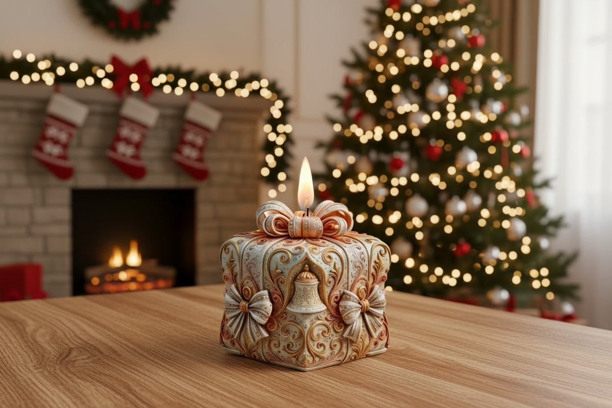 Regal Noel embodies the heart of Christmas: giving, gratitude, and warmth. Adorned with intricate patterns, bows, and a festive bell, this candle symbolizes joy wrapped in elegance. It carries the energy of heartfelt traditions, the sacredness of togetherness, and the anticipation of blessings yet to unfold. Light it to invite harmony, abundance, and a majestic festive spirit into your space.