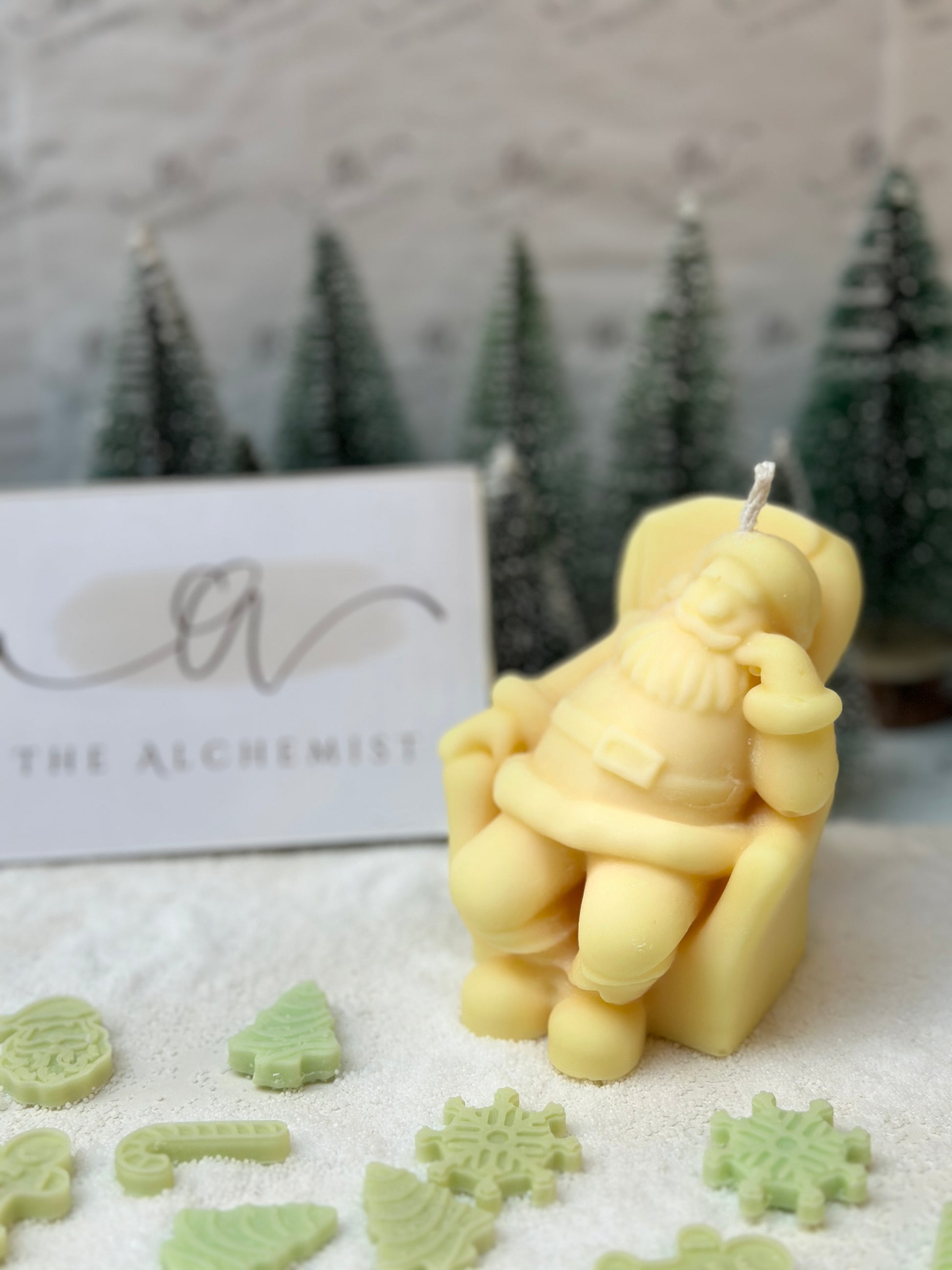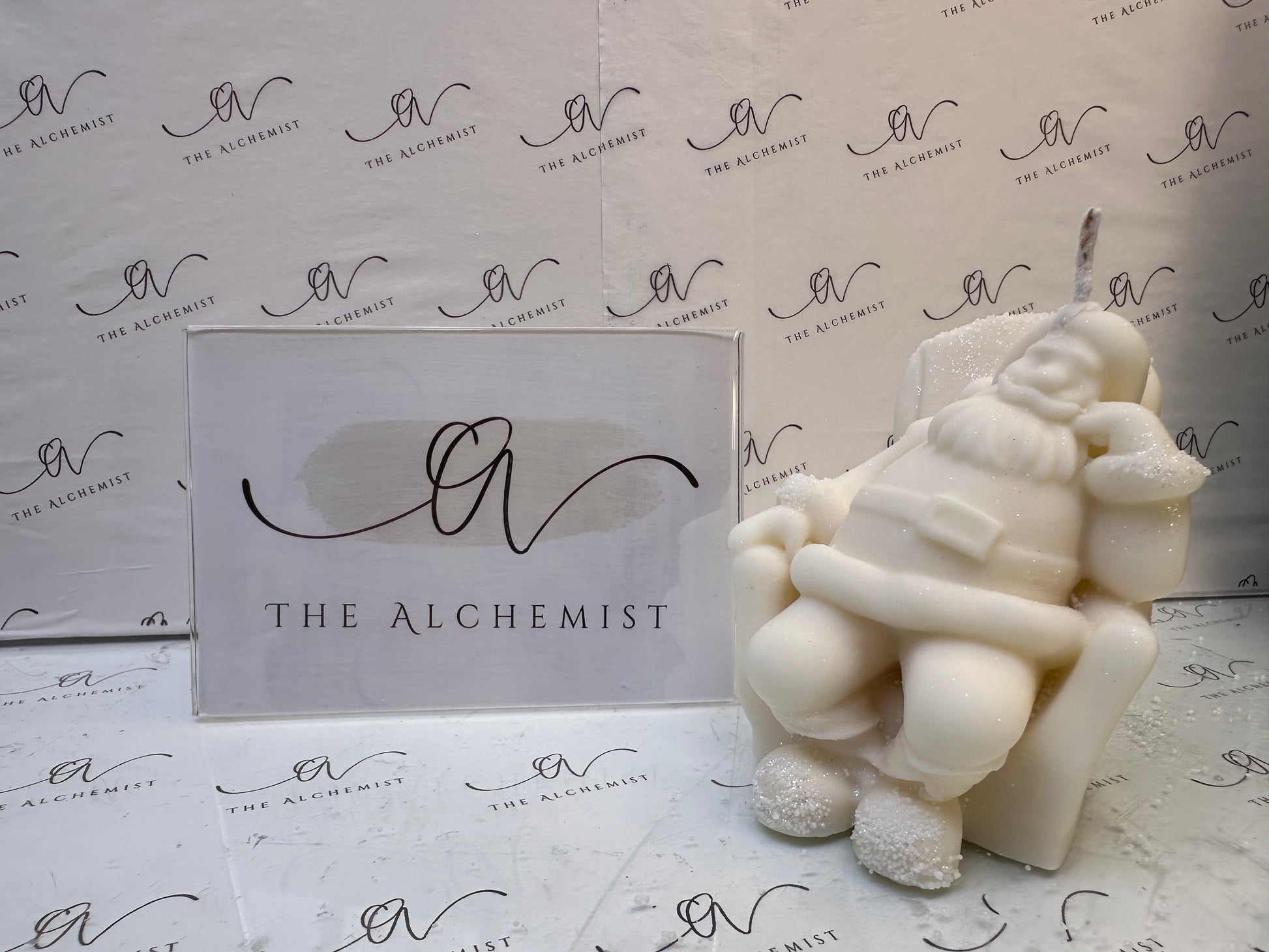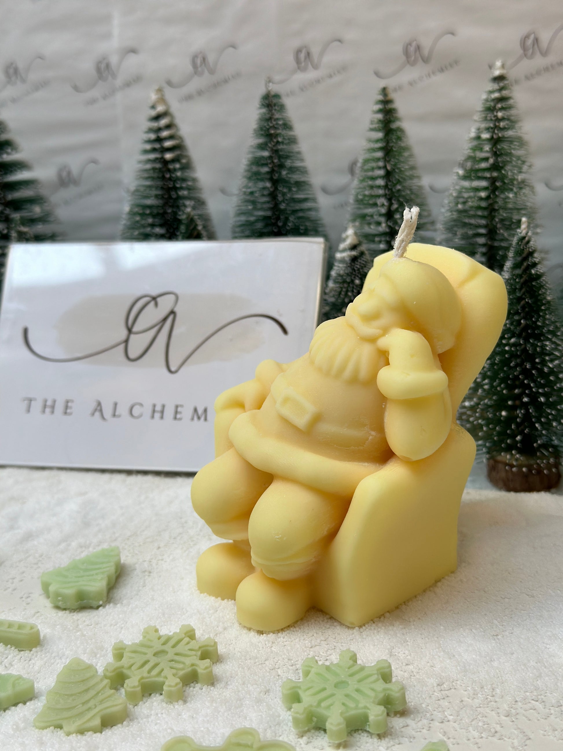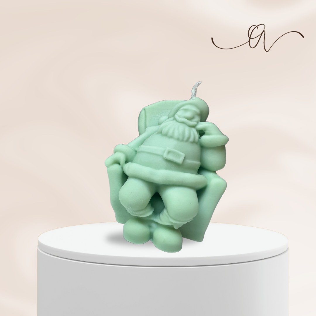“Santa’s Respite” candle This candle captures the joy of giving and the warmth of holiday traditions. Santa taking a well-earned rest symbolizes gratitude, relaxation, and the reward of hard work. Celebrate the magic of the season with Santa’s cozy moment of joy.