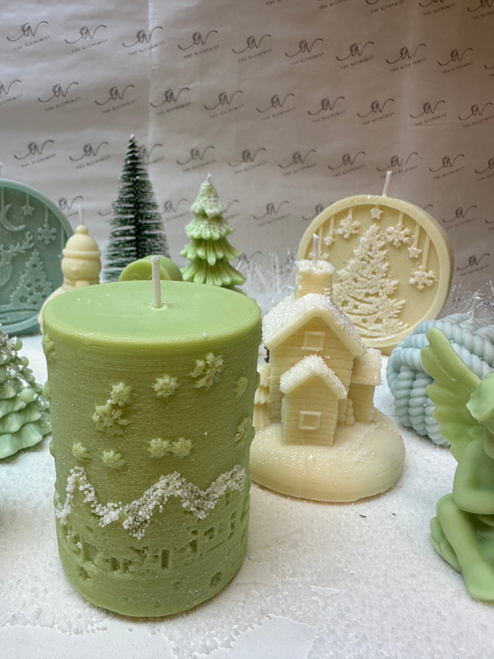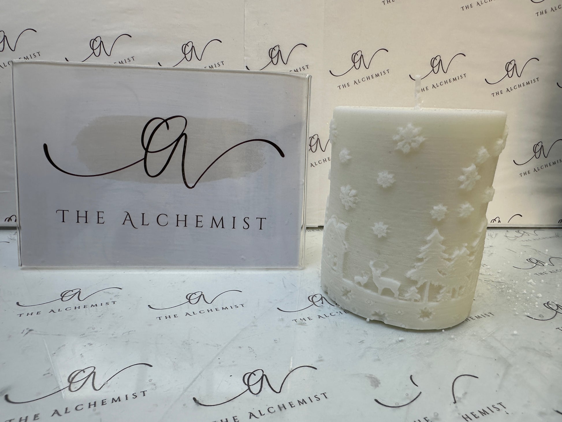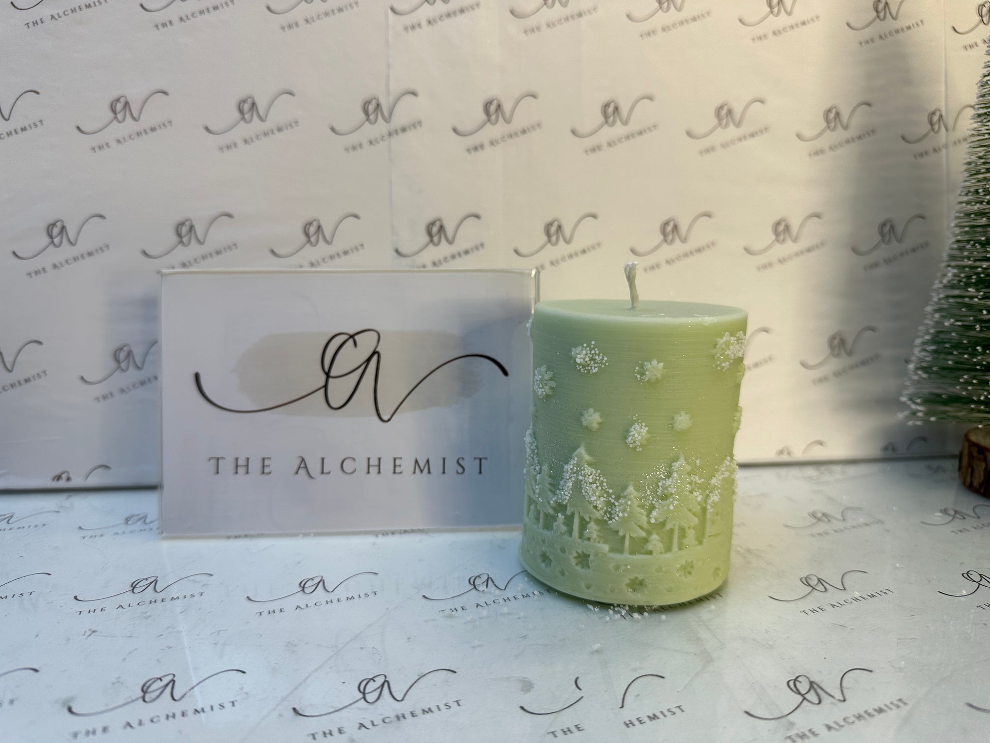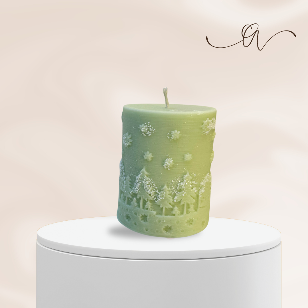 "Snowfall Whisper" #Candle Embrace the magic of winter with Snowfall Whisper, a candle that evokes the beauty of snowflakes gently blanketing a serene forest. Featuring intricate details of trees and reindeer, this piece symbolizes peace, renewal, and the quiet wonder of the season. Illuminate your home with its timeless charm.