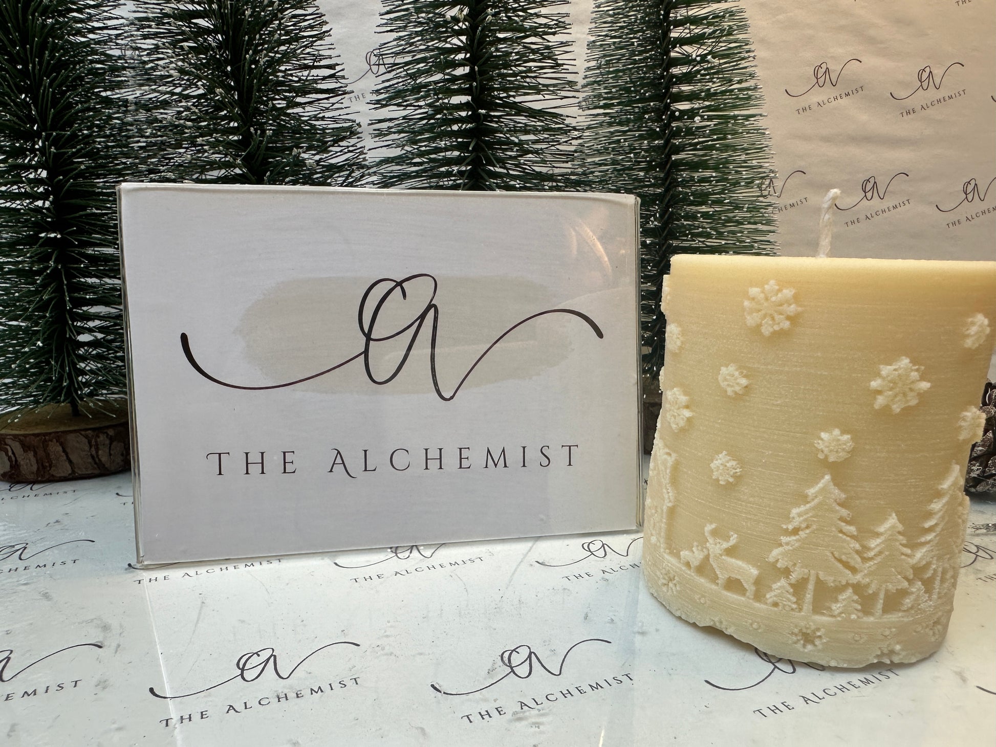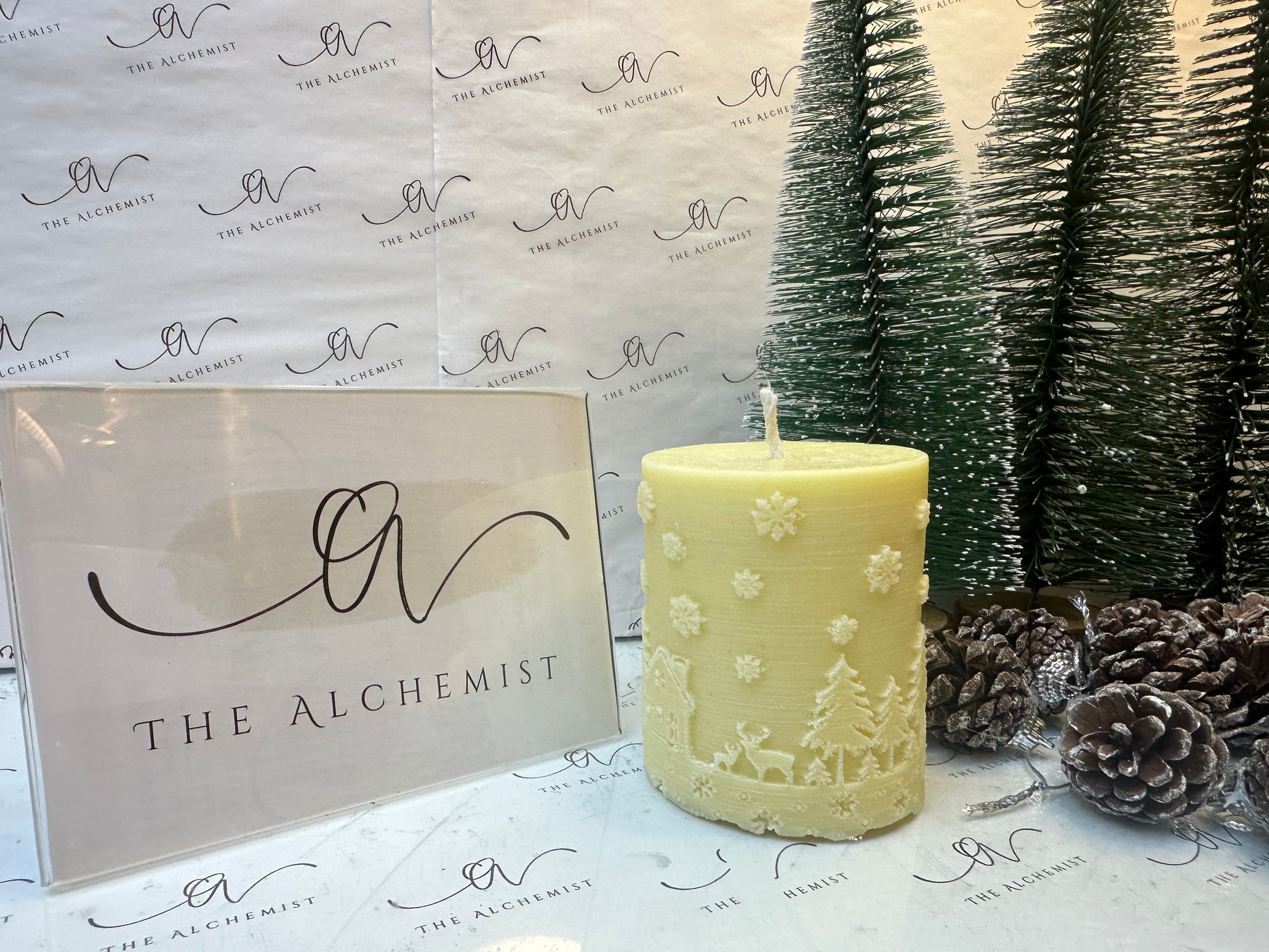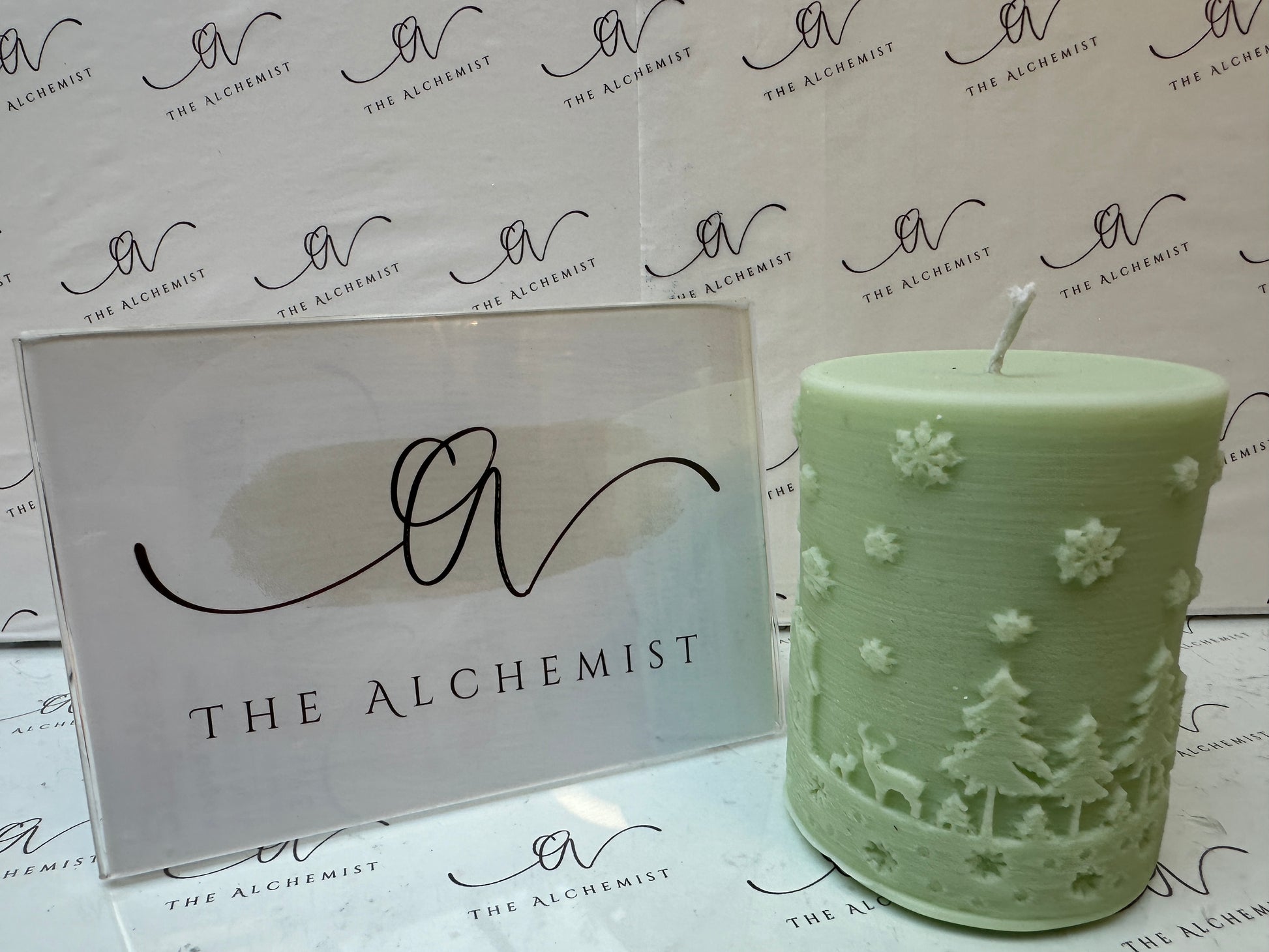 "Snowfall Whisper" #Candle Embrace the magic of winter with Snowfall Whisper, a candle that evokes the beauty of snowflakes gently blanketing a serene forest. Featuring intricate details of trees and reindeer, this piece symbolizes peace, renewal, and the quiet wonder of the season. Illuminate your home with its timeless charm.