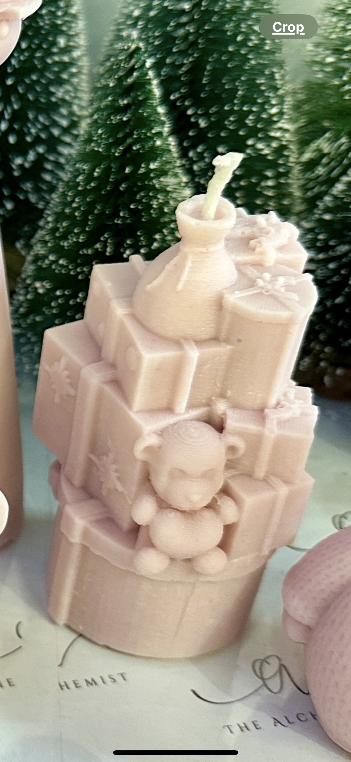 "The Stack of Cheer" #Candle Celebrate the joy of giving with Stack of Cheer, a candle symbolizing generosity, abundance, and the festive spirit of the holiday season. Crafted as a playful tower of beautifully wrapped gifts, this piece brings warmth, charm, and the excitement of surprises to your decor. Light it up to evoke gratitude and the magic of sharing during this special time of year.