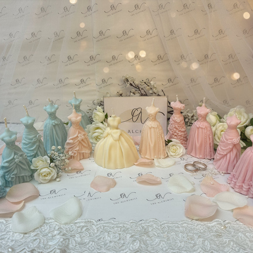 (Wedding dress candle) Represents the grace and beauty of the bride, a timeless symbol of love and celebration. "The Bridal Elegance 4" reflects the magical beginning of a shared life, making it a perfect gift for weddings or engagements.!