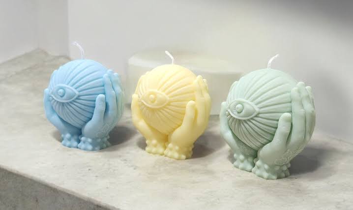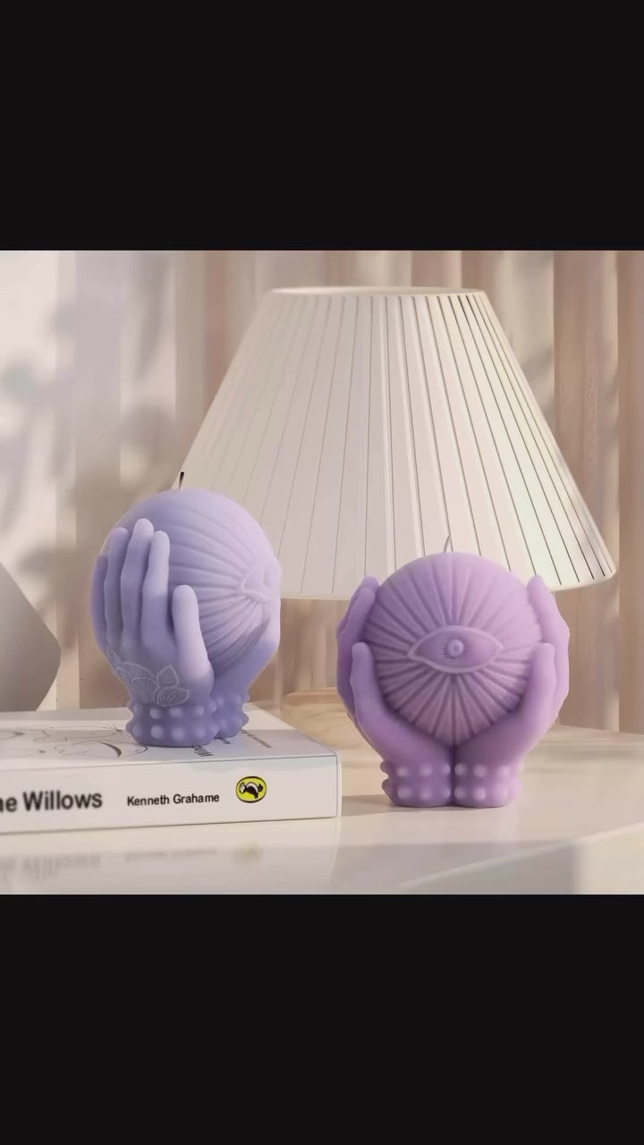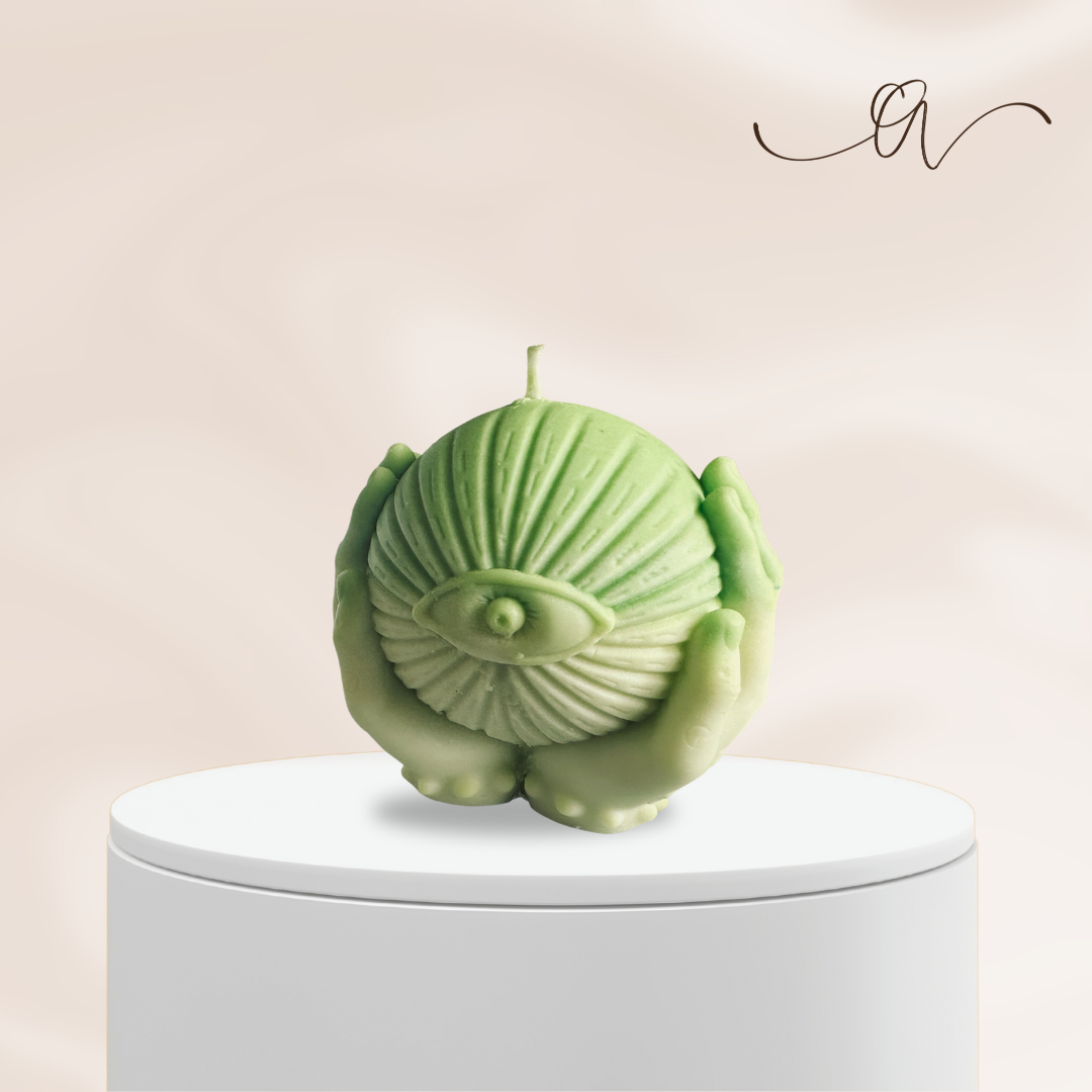 “Third Eye Awakening” embodies the energies of protection, intuition, and spiritual awakening. The candle’s design features nurturing hands gently embracing a sphere, symbolizing universal support and grounding energy. Engraved on the hands is the Third Eye Chakra (Ajna) symbol, enhancing the candle’s connection to inner wisdom, clarity, and heightened awareness.