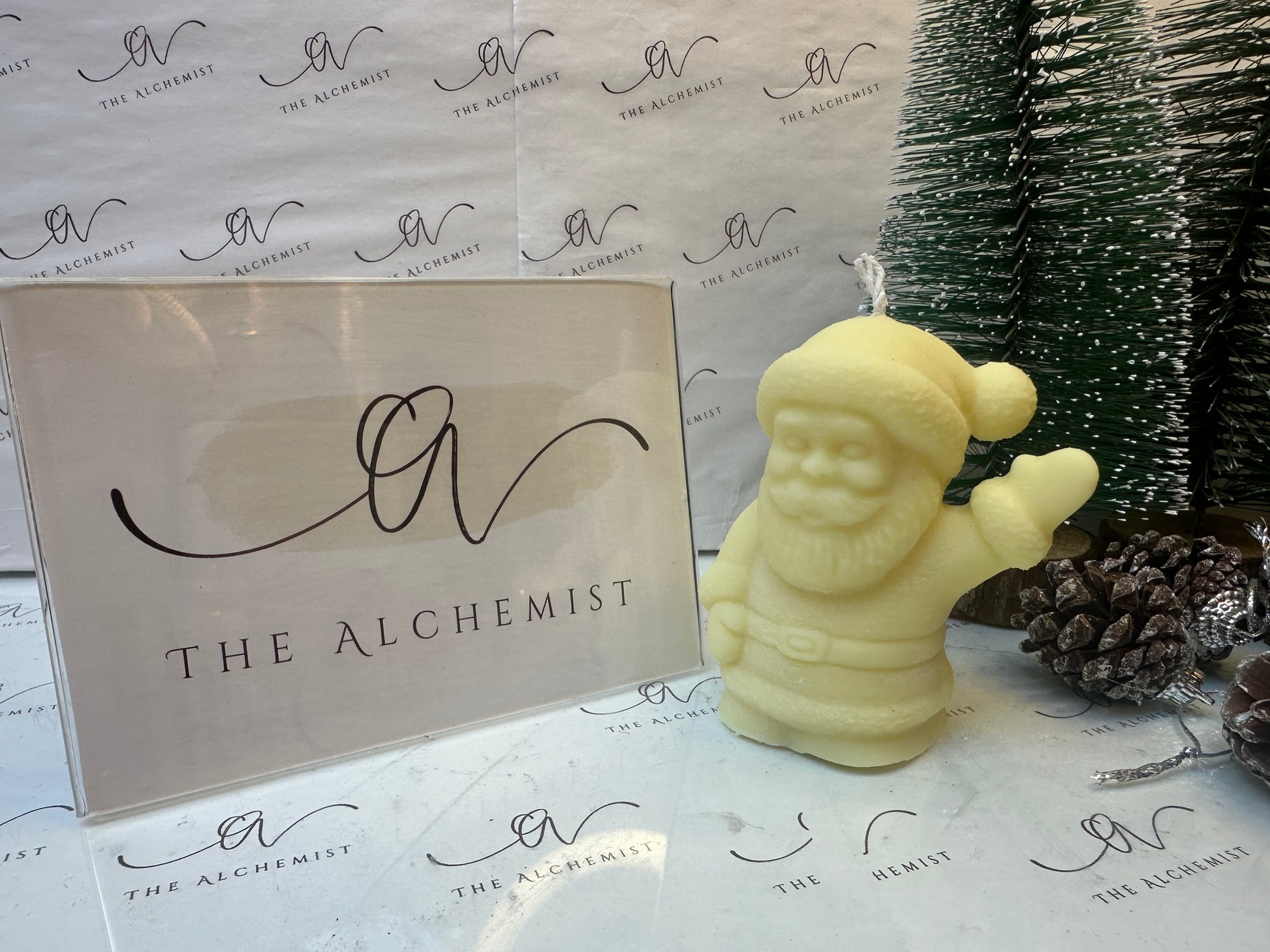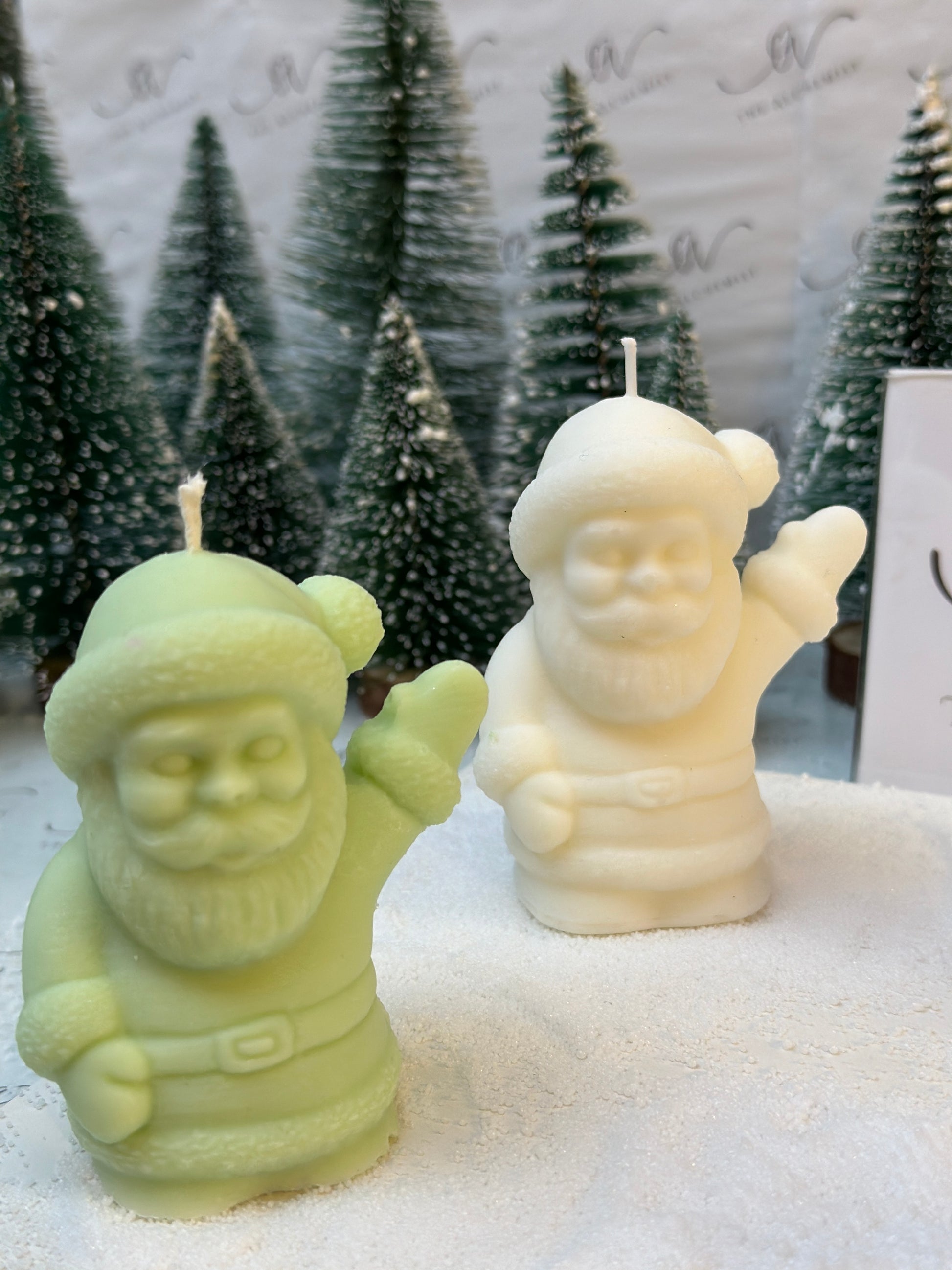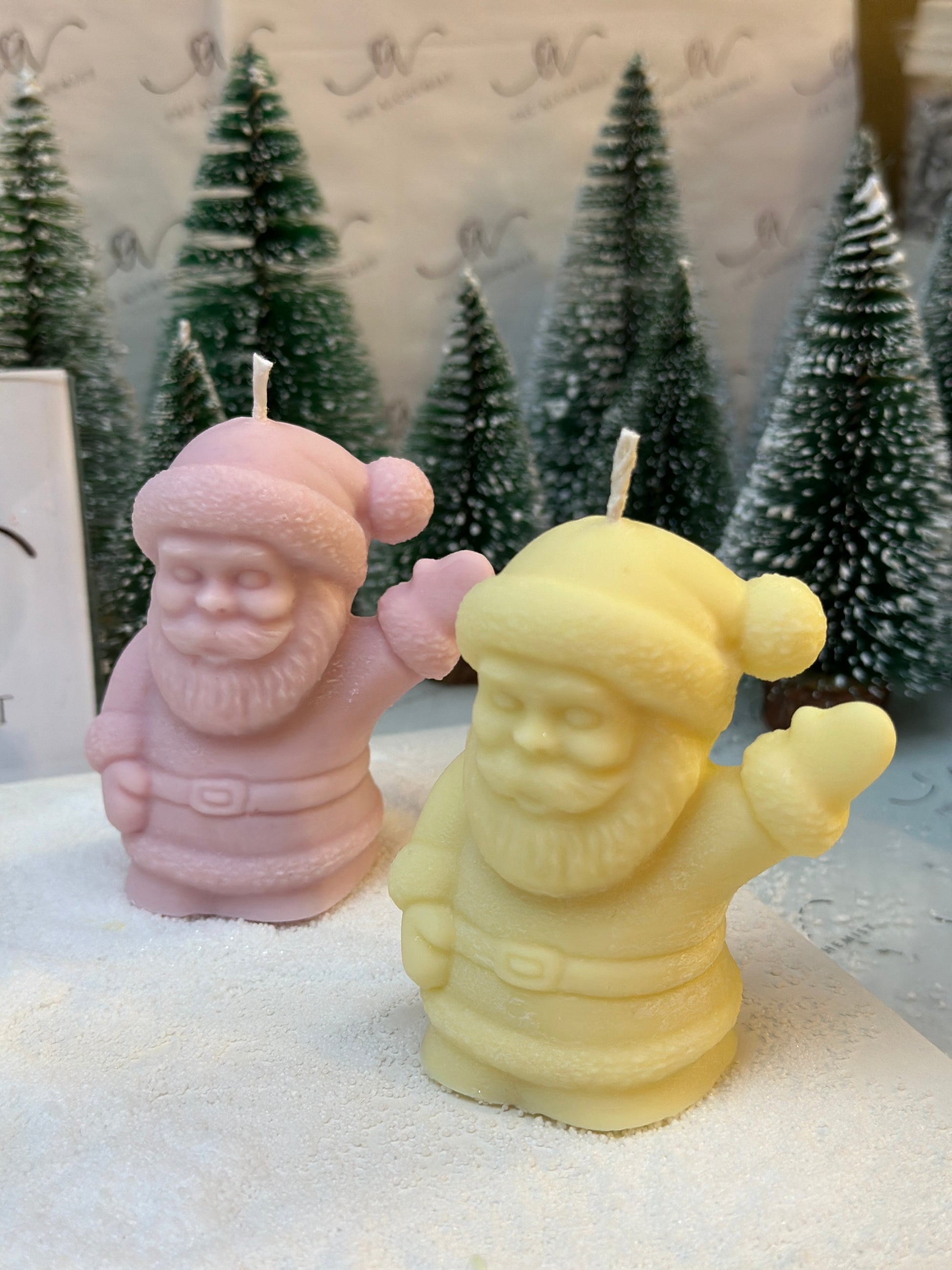 "Waving Santa " This candle embodies joy, generosity, and the festive cheer that brightens the holiday season. With its warm and welcoming design, it represents the spirit of giving and the happiness shared with loved ones. Perfect for spreading positivity and light during celebrations.